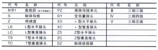 母線功能單元線制代號(hào)